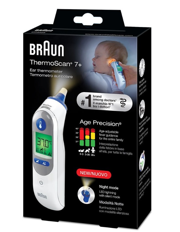 - يتميز جهاز Braun ThermoScan 7+ بتقنية Age Precision المبتكرة، حيث يمكن ضبط إرشادات الحمى وفقًا للعمر. وهذا يساعد في توفير قراءات حرارة دقيقة تأخذ في الاعتبار العمر وتقديم توجيهات مناسبة لمختلف الفئات العمرية.