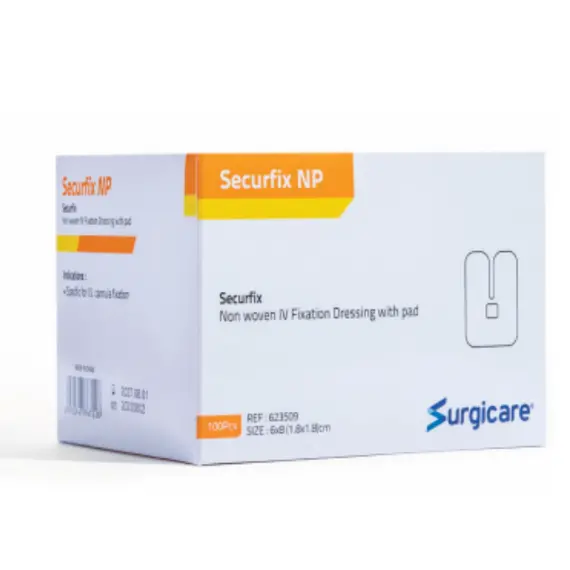 مثبت وريدي غير منسوج مع شق وضماد مقاس 8 * 6 رقم 623509 Securfix NP