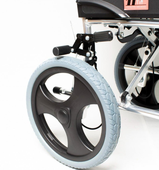 • نظام منع الانقلاب. للحد من الميل للخلف ، مما يقلل من خطر انقلاب الكرسي المتحرك.