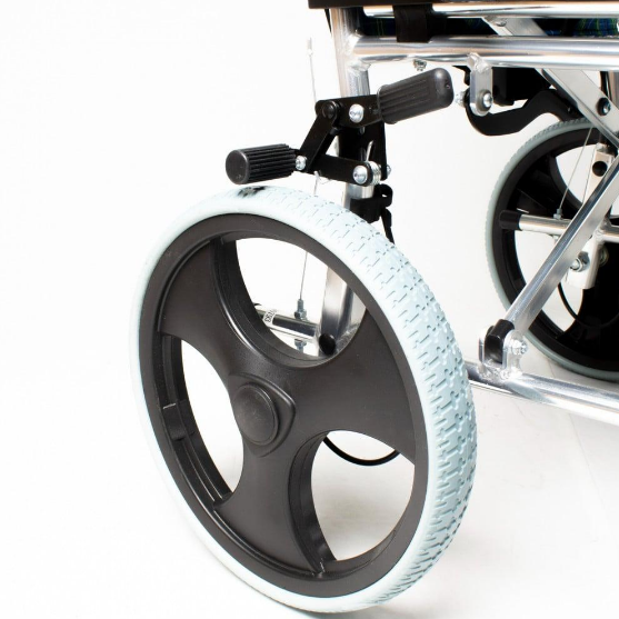 • نظام منع الانقلاب. للحد من الميل للخلف ، مما يقلل من خطر انقلاب الكرسي المتحرك.