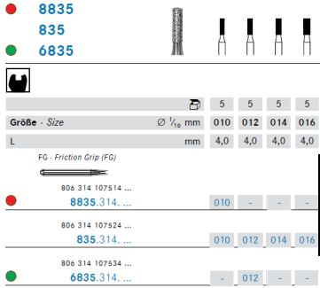 DIAMOND BURS PK/5 8835.314.010