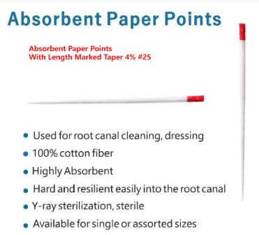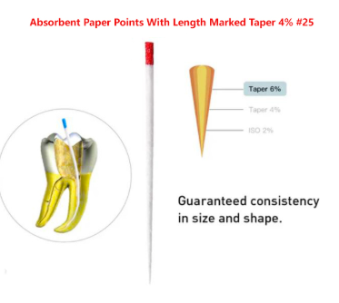 Absorbent Paper Points With Length Marked Taper 4% #25