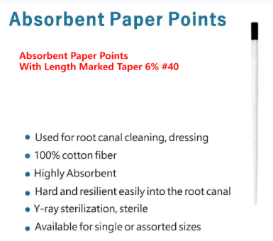 Absorbent Paper Points With Length Marked Taper 6% #40