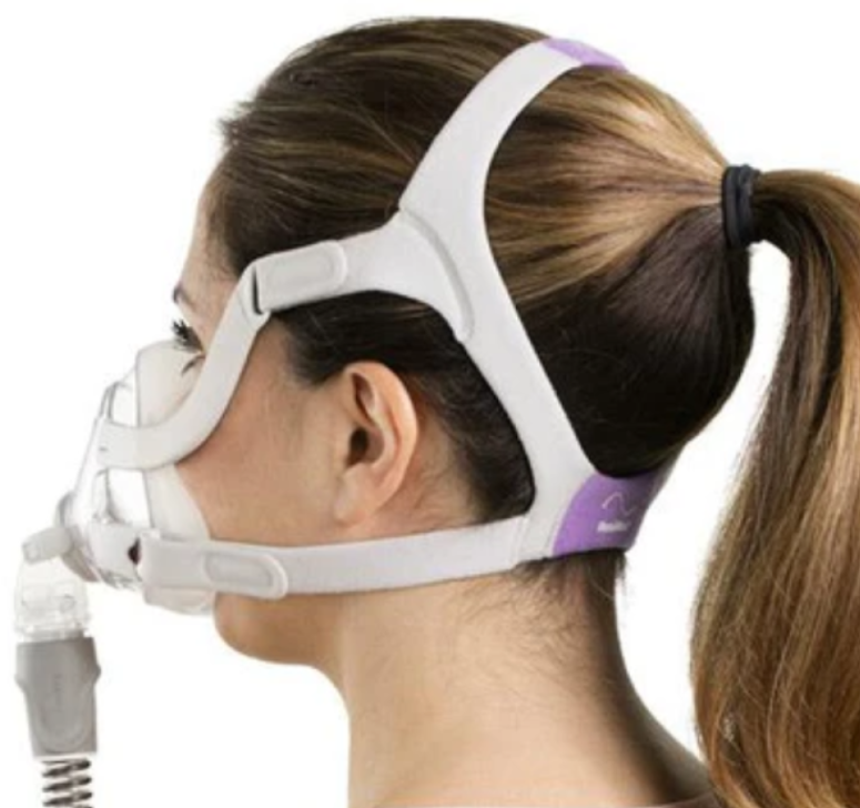 قناع CPAP AirFit F20 من ResMed للنساء كامل الوجه مع غطاء للرأس .