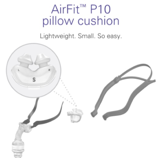 يتكون من ثلاثة أجزاء فقط - الوسائد الأنفية، وأغطية الرأس، وإطار القناع مع أنبوب قصير مدمج - AirFit P10 For Her أخف بنسبة 50٪ تقريبًا من أقنعة الوسادة الأنفية السابقة من ResMed. يتطلب التصميم البسيط القليل جدًا من الاتصال بالوجه، ولا يحتوي على دعم للجبهة، ولا توجد أجزاء صلبة تلامس الوجه. يوفر AirFit For Her مجالًا واضحًا للرؤية وشعورًا مفتوحًا عند الاستخدام لذلك يسهل النوم معه؛ في الواقع، في الدراسات السريرية، نام المشاركون في المتوسط لمدة 42 دقيقة أطول باستخدام AirFit P10 مقارنةً بجهاز Swift FX من ResMed.