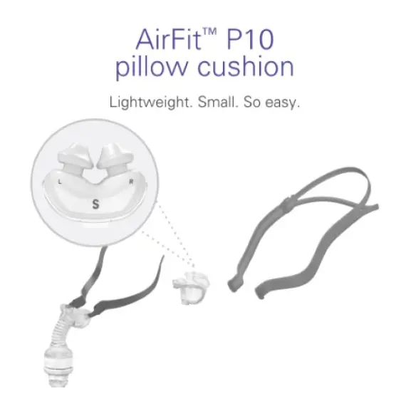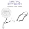 تتميز وسائد الأنف AirFit P10 For Her بجدار خارجي ناعم لتوفير الراحة وجدار داخلي آمن للدعم. ترتكز وسائد الأنف AirFit P10 على غرفة هوائية مدمجة، مع حركة الترامبولين، والتي تتكيف مع حركاتك الطبيعية أثناء النوم مما يوفر ختمًا ناعمًا وآمنًا حتى للأشخاص الأكثر نشاطًا. يتميز كل مقاس من أحجام الوسائد الثلاثة في AirFit بحلقة ألوان مختلفة لسهولة التعرف عليها: صغير جدًا (وردي)، صغير (شفاف) ومتوسط (رمادي). بالإضافة إلى ذلك، تتوفر وسائد كبيرة ذات حلقة زرقاء اللون بشكل منفصل للأشخاص ذوي فتحات الأنف الكبيرة.