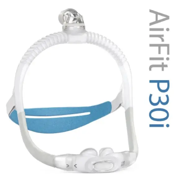 - حزمة البداية القياسية: قناع وسادة الأنف ResMed AirFit P30i بما في ذلك عصابة الرأس، وإطار القناع القياسي مع وسادات مريحة، ووسادة الأنف بمقاسات صغيرة ومتوسطة بما في ذلك فتحات زفير QuietAir.