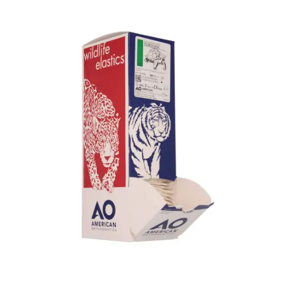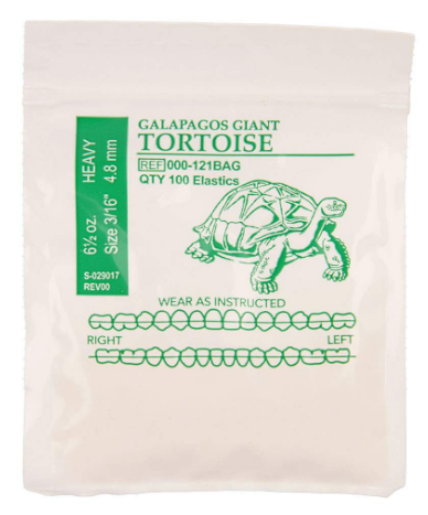 American Orthodontics Elastics Wildlife Tortoise | Heavy, 6.5 Oz, 3/16" Size, 100 Packs Per Box, 10,000 Elastics