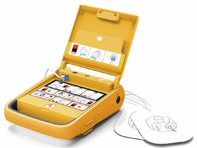 - جهاز إزالة رجفان القلب مصمم لاعطاء صدمة كهربائية للقلب لمحاولة إنعاشه