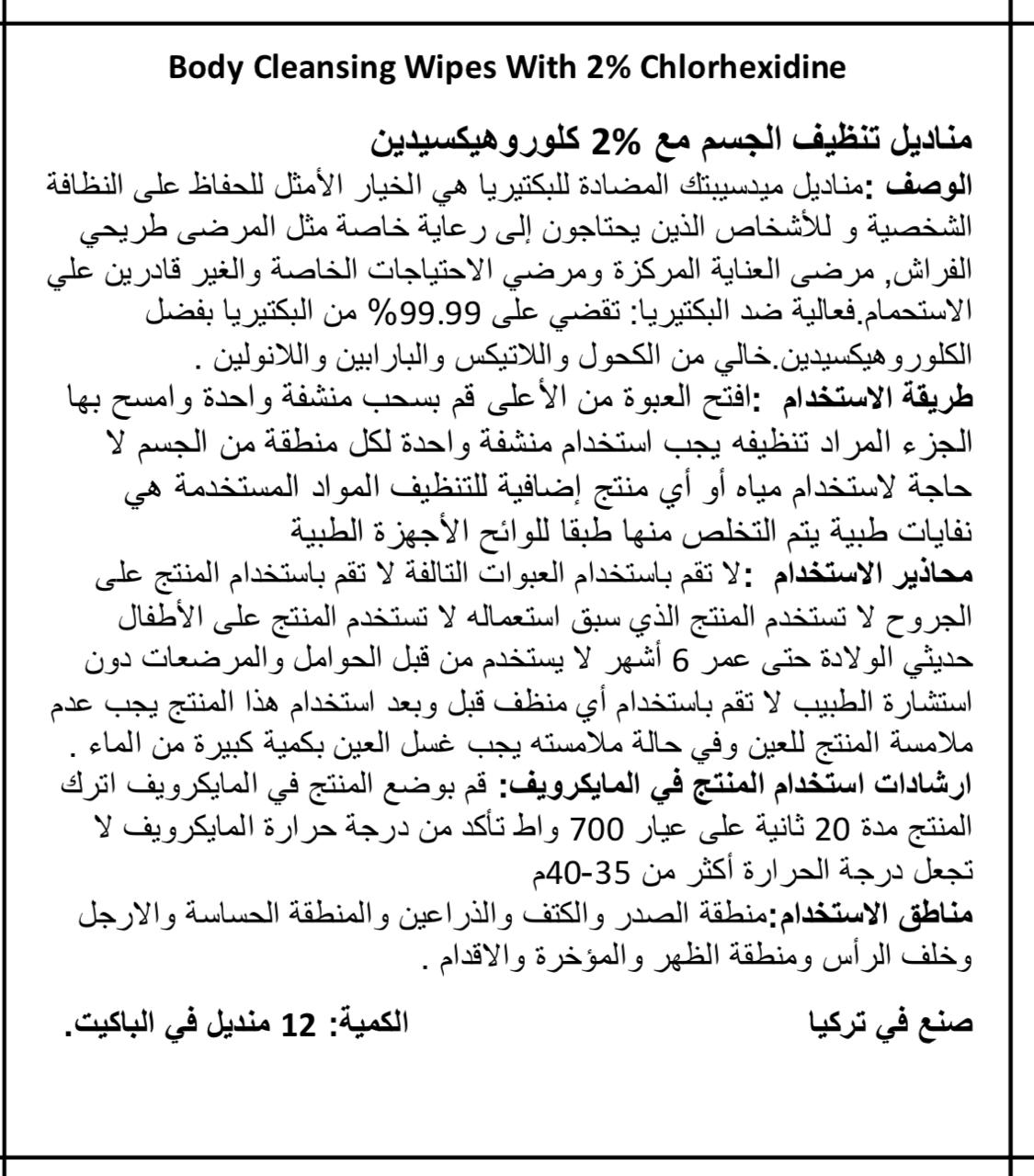 مناديل تنظيف الجسم مع 2% كلوروهيكسيدين ( 1Pkt / 12Pcs)