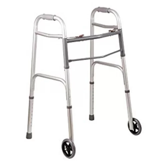 مشاية بعجل ومقابض بلاستيكية مناسبة ومريحة في الاستخدام. تساعد علي زيادة الحركة وعدم الاعتماد علي الآخرين، وتسمح للمستخدمين بالمشاركة في الأنشطة اليومية بالرغم من الصعوبة في الحركة.