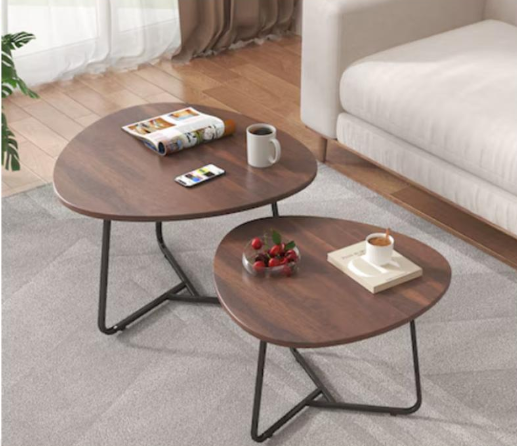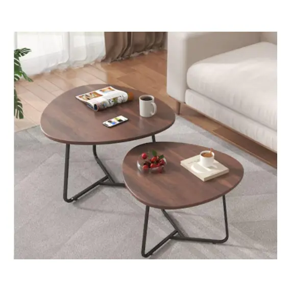 طقم طاولات اوفال وسط خشبي مع ارجل من المعدن الاسود