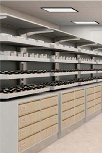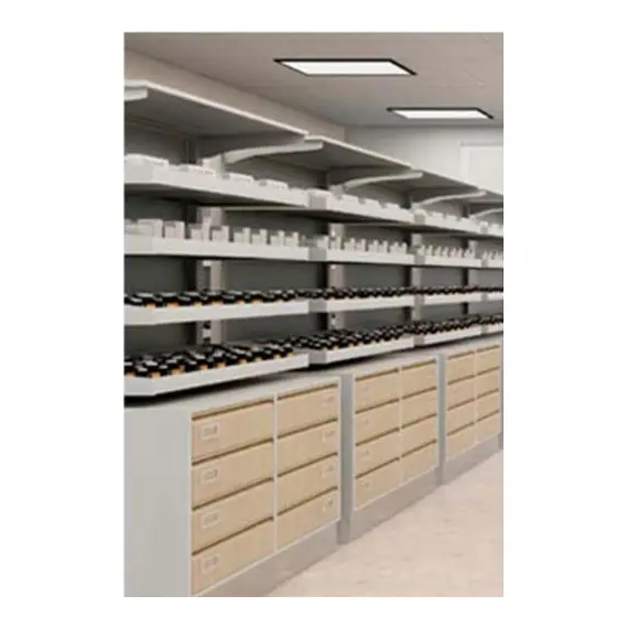 وحدة رفوف ادوية طبية معدن بيطح خشبي مع ادارج