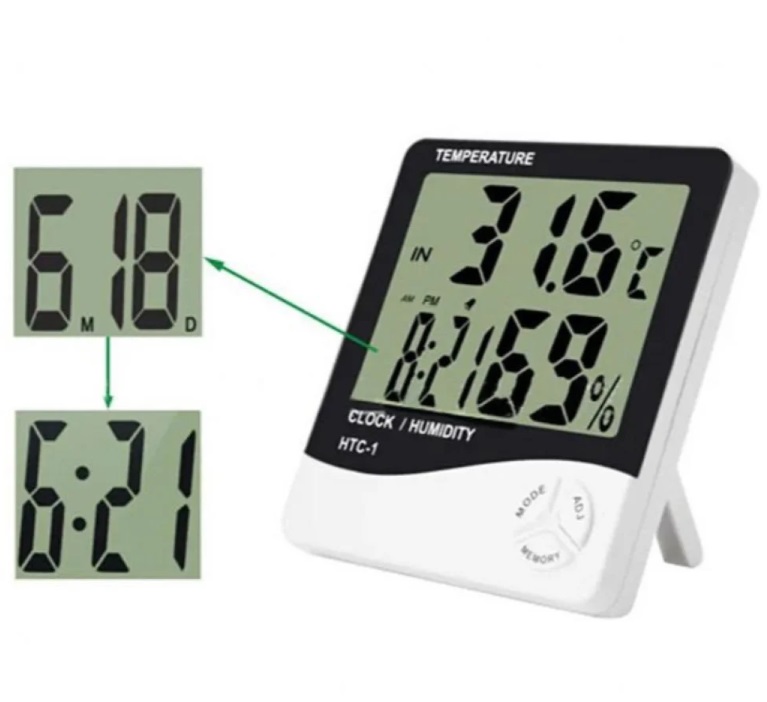 - يمكن للجهاز قياس درجة الحرارة والرطوبة في الجو بدقة. حيث يعرض القراءات على الشاشة الLCD بطريقة سهلة القراءة والفهم.
