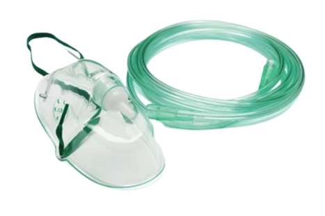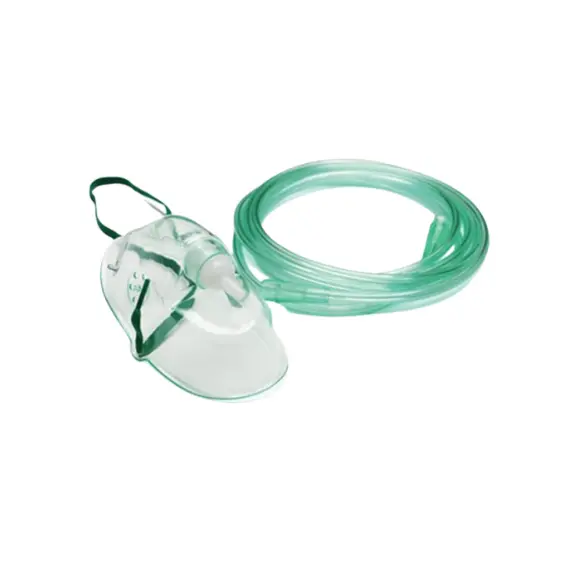 كمامة أكسجين متوافقة مع أجهزة توليد الأكسجين وأسطوانات الأكسجين. توضع الكمامة على الفم والأنف، وتم تدعيم الجزء العلوي منها بحزام لتقليل تسريب الأكسجين من الكمامة. تتميز كمامة الأكسجين بحزام مطاطي لتثبيت الكمامة على الوجه، مع إمكانية ضبط طول الحزام بما يتناسب مع المستخدم. الكمامة مزودة بقطعة إضافية تساعد على التوصيل بين الكمامة والأنبوب. تمت زيادة متانة أنبوب كمامة الأكسجين من الطرفين لضمان ثبات أفضل. المقاسات المتوفرة: كبار - أطفال.
