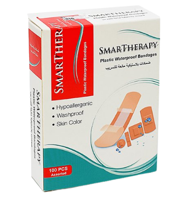 مواصفات بلاستر مشكل مصري: بلاستر مقاسات مختلفة للإسعاف الأولي مزود بضماد معقم. يحفظ الضماد المعقم الجروح من الالتهاب والرطوبة. تحتوي العلبة على 100 قطعة. العلامة التجارية: SMART THERAPY.