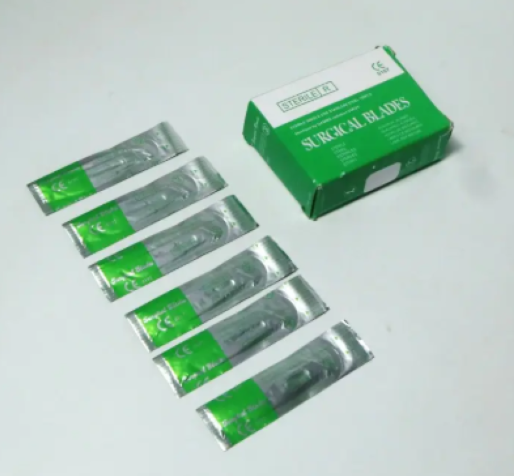 1. شفرة جراحية معقمة ذات حافة قطع حادة ودقيقة في عبوات محكمة الغلق،
