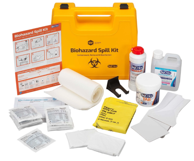 في حقيبة صفراء صلبة يسهل التعرف عليها، يُمكن تركيب طقم انسكاب المواد الخطرة بيولوجيًا لسهولة الوصول إليه. يشمل هذا الطقم جميع معدات الوقاية الشخصية اللازمة، مما يُتيح إدارة سريعة وفعالة للانسكابات. يُنصح باستخدام طقم انسكاب المواد الخطرة بيولوجيًا في الأقسام والعيادات الطبية الكبيرة، بما في ذلك غرف الطوارئ، حيث يزداد خطر انسكاب المواد الخطرة بيولوجيًا.