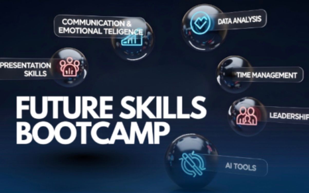 يهدف معسكر مهارات المستقبل إلى تمكين المشاركين من اكتساب المهارات األساسية المطلوبة لسوق العمل الحالي والمستقبلي، من خالل تطوير مهارات التواصل والذكاء العاطفي والقيادة واإلنتاجية، إلى جانب التعرف على التطبيقات العملية للذكاء االصطناعي وأساسيات تحليل البيانات والعرض التقديمي لدعم اتخاذ القرار ورفع كفاءة األداء.