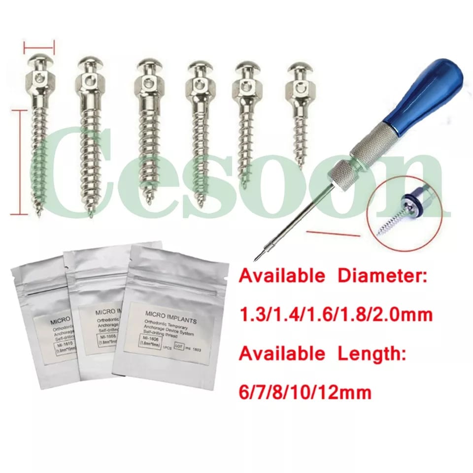 تتوفر بأقطار متعددة (1.3 – 2.0 مم) وأطوال مختلفة (6 – 12 مم) لتناسب مختلف الحالات السريرية، مع أداة إدخال مخصصة لسهولة ودقة التركيب.
