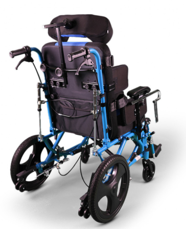 - كرسي متحرك مصمم للأشخاص ذوي الإحتياجات الخاصة ليساعد في نقلهم من مكان لأخر مع ضمان الحماية والتثبيت