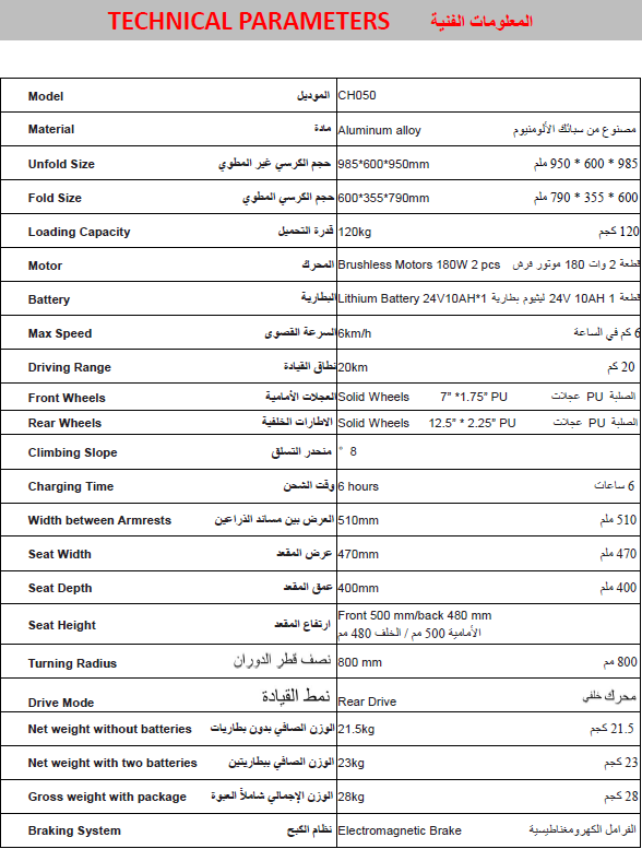كرسي كهربائي خفيف الوزن قابل للتطبيق CH050