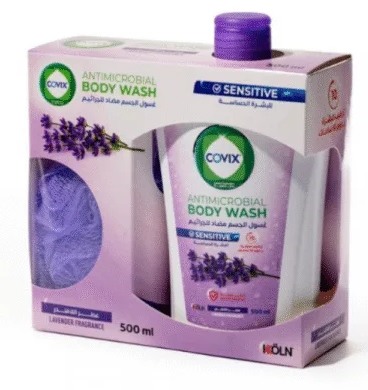 Covix Antimicrobial Body Wash 500 ml , Lavender With Shower Puff