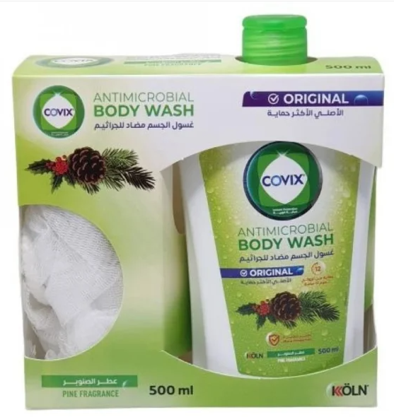 Covix Antimicrobial Body Wash 500 ml , Original With Shower Puff