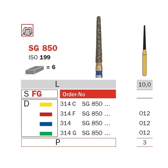 DIAMOND BUR, FG 012, FINE, CONE ROUND END (GOLDIES) ISO #199 PK/5