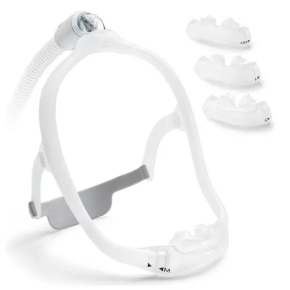 وسائد أنف سيليكون خفيفة الوزن وآمنة تسمح وسائد الأنف السيليكونية بنوم مريح من خلال العمل كختم آمن وناعم. يمكن تركيبها وفصلها بسهولة عن إطار DreamWear بسبب تصميمها القابل للفك والتركيب.