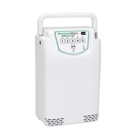 Lightweight, durable and proven designs 3L and 5L pulse settings utilizing VPSA technology With CMV, patients receive therapeutic oxygen in the first third of inspiration Simple, one touch operation Fully functional on AC or DC power FAA approved for use on commercial airlines Optional backpack making it comfortable for patients to wear all day long Best in industry 5-year warranty covering sieve bed replacements Lowest cost of ownership Battery packs with up to 9.4 hours with EasyPulse POC-5 and 11 hours for EasyPulse POC-3