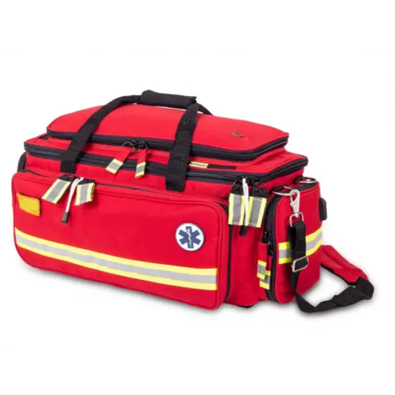 - شنطة الإسعافات المتقدمة مزودة بحزام قصير لحملها باليد وحزام طويل مزود بوسادة إسفنجية لحمل الشنطة على الكتف.