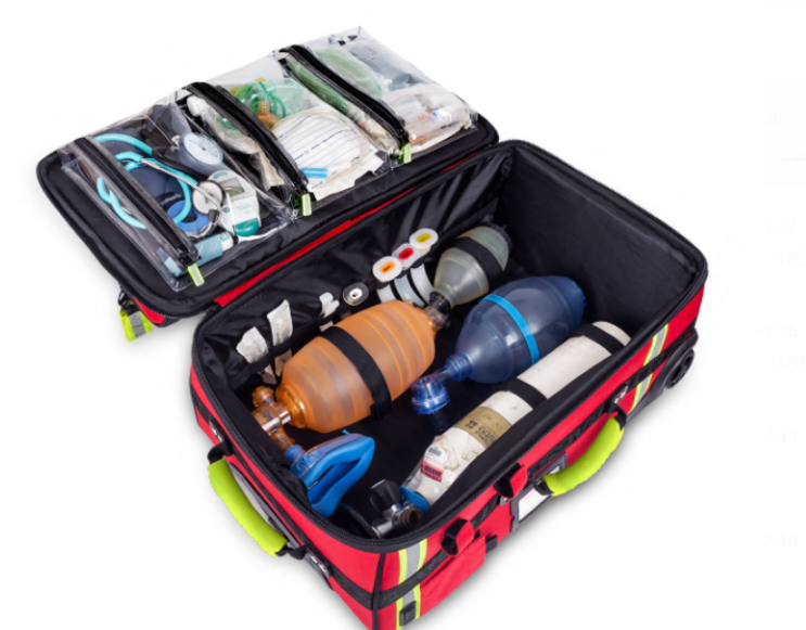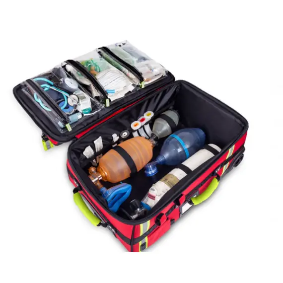 - تتميز الشنطة بإمكانية حمل اسطوانة الأكسجين ومعدات المساعدة على التنفس.