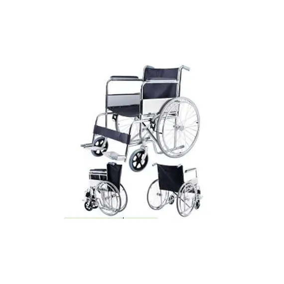 إطار متين من الصلب الكربوني المطلي بالكروم. عجلات أمامية صلبة PVC مقاس 8 بوصة. عجلات خلفية مقاس 24 بوصة بإطارات صلبة مزودة بقفل فرامل. مساند للقدمين تقلب لأعلى مزودة بألواح قدم من الالومنيوم القوى. مساند للذراعين ثابتة ومبطنه مع واقي جانبي من الفولاذ المقاوم للصدأ. المقعد منجد ومبطن PVC متين وقوي. يتحمل وزن حتى 100KG. عرض المقعد 49.5 سم. عمق الجلوس 42 سم. |
