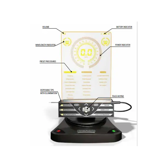 • Dual wavelength technology combines the optimal melanin absorption of an 810 nm wavelength diode laser with the optimal water absorption of the 980 nm wavelength diode laser