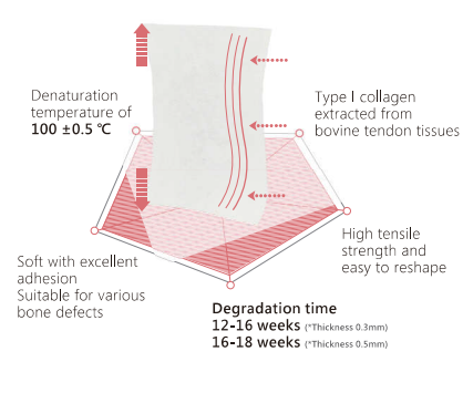 ® Complete resorbable, avoids possible second surgery for removing implanted membranes.