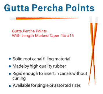 Gutta Percha Points With Length Marked Taper 4% #15