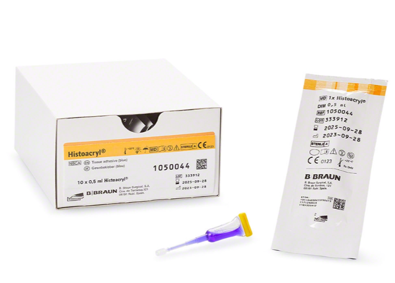 The tissue adhesive Histoacryl® consists of monomeric n-butyl-2-cyanoacrylate, which polymerizes quickly in connection with tissue fluid.