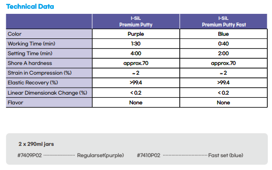 I-SiL Premium Putty Vinyl Polysiloxane Impression (A-Silicone) Regular Set / Fast Set