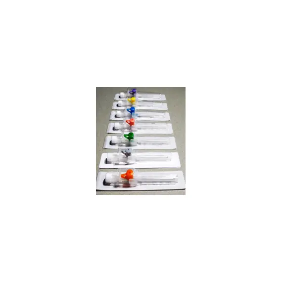 قنية وريدية (I.V. Cannula) مزودة بقسطرة وصمام للحقن، متوفرة بمقاسات: 18G، 20G، 22G، 26G.