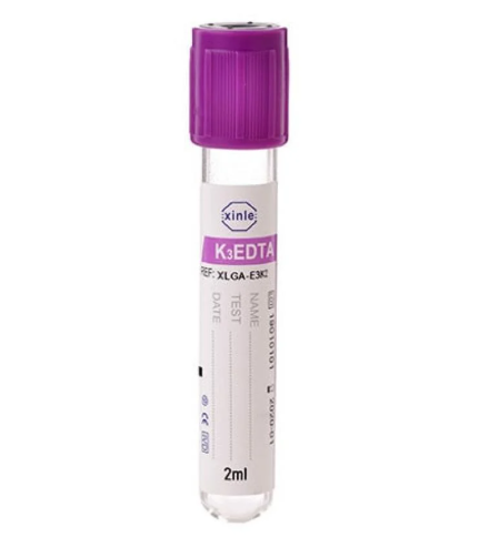 يُضاف محلول K2EDTA أو K3EDTA إلى الأنبوب المستخدم في فحوصات الدم الروتينية. المطاط المستخدم في الأنبوب مُصمم ليتوافق مع جميع مجسات أجهزة التحليل. يُقلب الأنبوب من 8 إلى 10 مرات بعد سحب الدم، ويجب قلبه عدة مرات قبل إجراء الفحص.