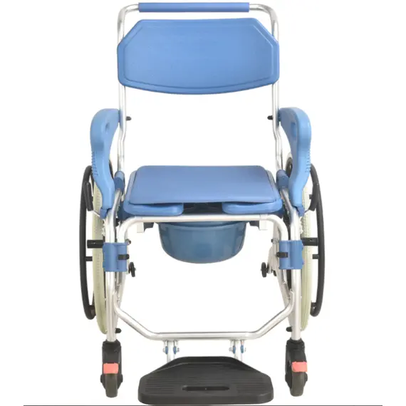 الكرسي مزوّد بمقعد مريح، وفتحة لاستخدام المرحاض مباشرة، كما يحتوي على مساند لليدين لراحة إضافية. تصميمه المتين يضمن دعمًا قويًا، وهو مثالي للاستخدام المنزلي، في المستشفيات، أو أثناء التنقل.