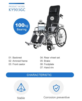 كرسي متحرك ظهر طويل و رافع ارجل KY903GC