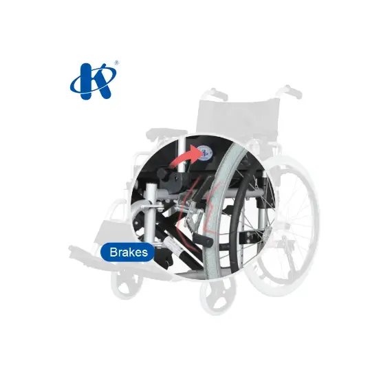 الكرسي مزود بمكابح يدوية للتثبيت عند الانتقال الى السيارة او السرير