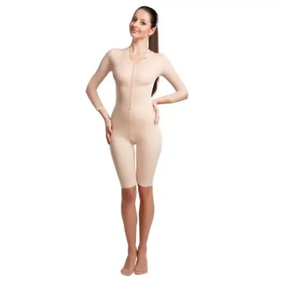- رداء كامل للجسم للنساء بعد العمليات الجراحية بأكمام بطول ثلاثة أرباع، يوفر ضغطًا من الكتفين إلى منتصف الساعد وينتهي فوق الركبتين. مناسب للاستخدام بعد جراحات الذراع أو الإبط، وشد الذراعين (شد الذراعين)، وشفط دهون الذراع، وجراحة تجميل البطن، وشد البطن، وسديلة DIEP، وشفط دهون البطن والظهر ومنطقة الحوض والأرداف والوركين والجنبين والفخذين