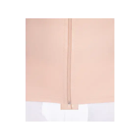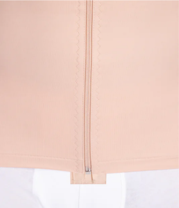 - يوجد سحاب إغلاق في الجزء الأمامي السفلي مع خطافات دعم لتسهيل ارتداء الملابس بعد العملية الجراحية وما بعدها