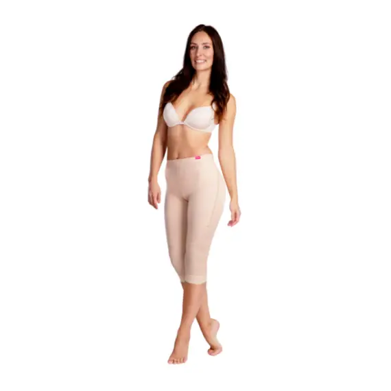 - الملابس الضاغطة بعد الجراحة للنساء؛ مع ¾ طول الساق. مناسب بعد شفط الدهون من الأرداف والوركين والفخذين والركبتين. مناسب أيضًا بعد شفط الدهون بالفيزر
