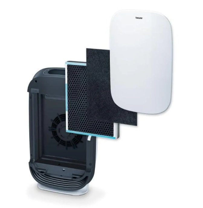 - تنظيف الهواء باستخدام مرشح من 3 طبقات (مرشح أولي + مرشح الكربون النشط + مرشح HEPA): يعمل على تنقية الهواء من الغبار وشعر الحيوانات والروائح وحبوب اللقاح والعديد من أنواع البكتيريا والفيروسات، وكذلك الغازات الضارة
