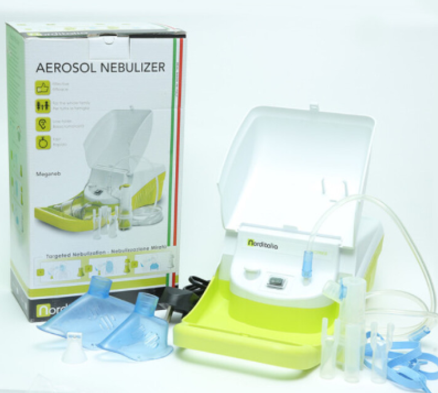 - جهاز العلاج بالهباء الجوي مزود بضاغط مكبسي يتميز بالأداء العالي والعمل المتواصل. يمكن للجهاز العمل بشكل مستمر دون توقف.