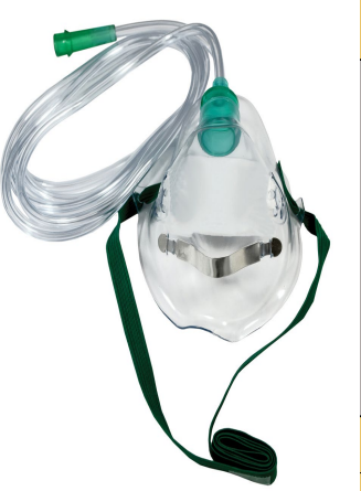 قناع أكسجين تركيز منخفض/متوسط، مزود بأنبوب طويل وشريط معدني، مقاس للبالغين